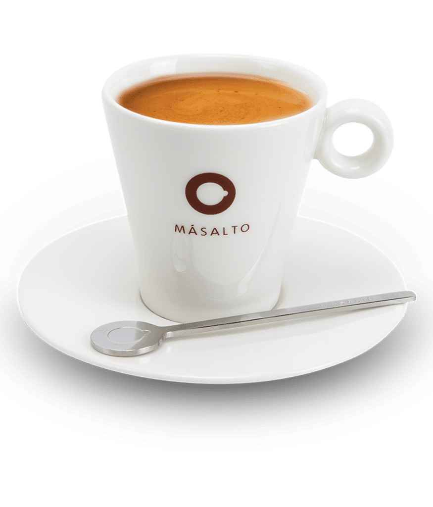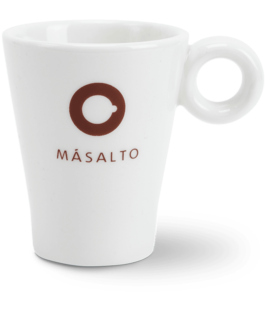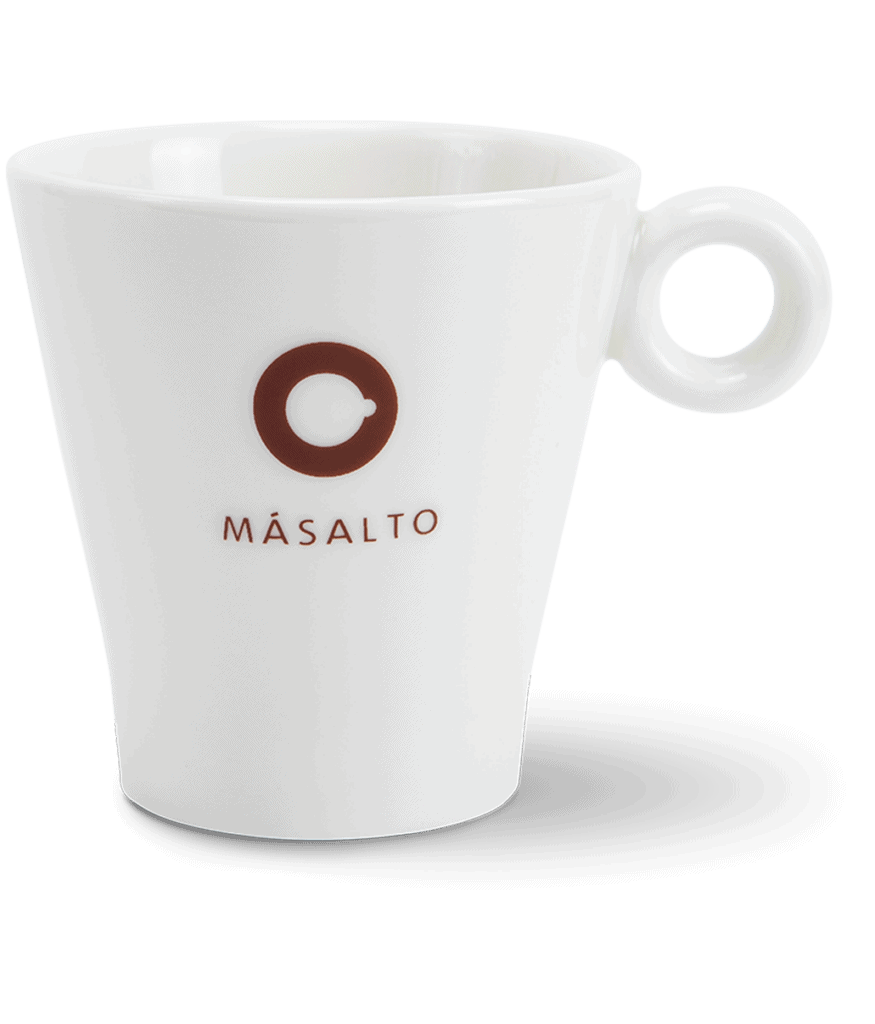 Dégustez votre café Másalto comme au restaurant grâce à nos tasses, sous-tasses et cuillères au design sobre et élégant.