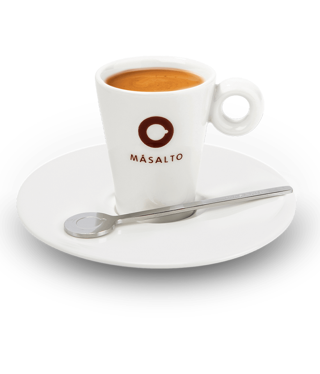 Ervaar een uitzonderlijke koffie met deze Masalto proefdoos die een Espressokopje, een schotel en een lepel bevat.